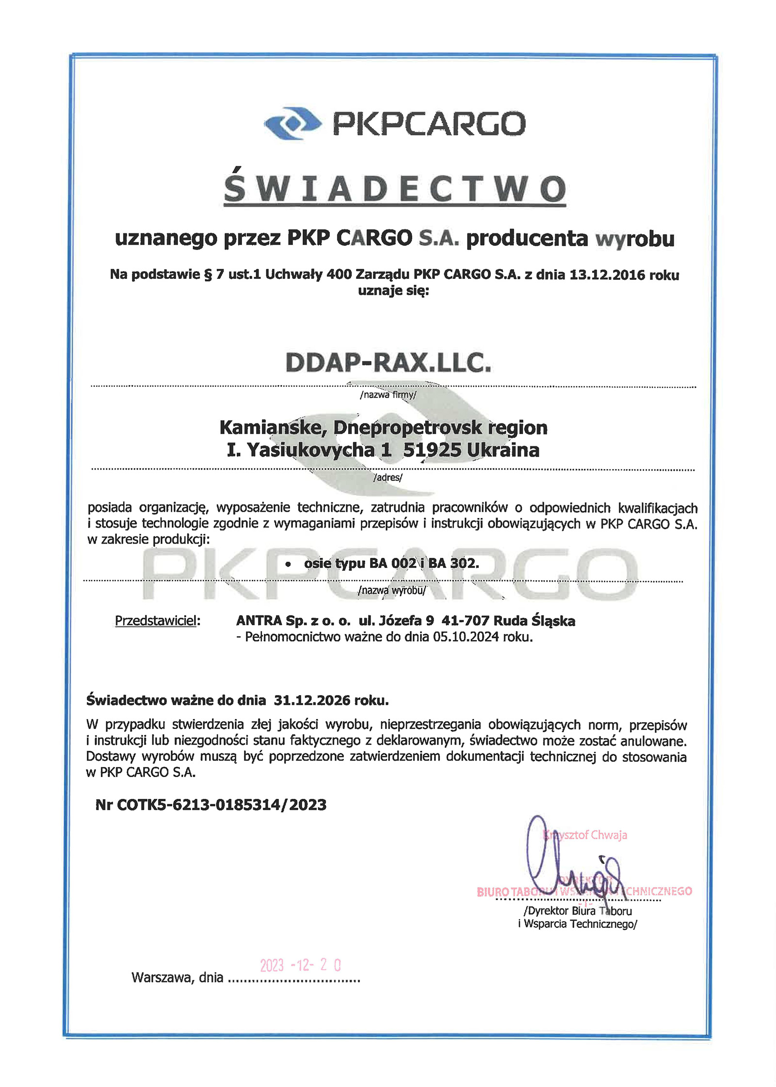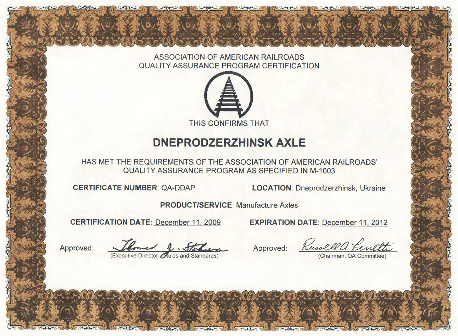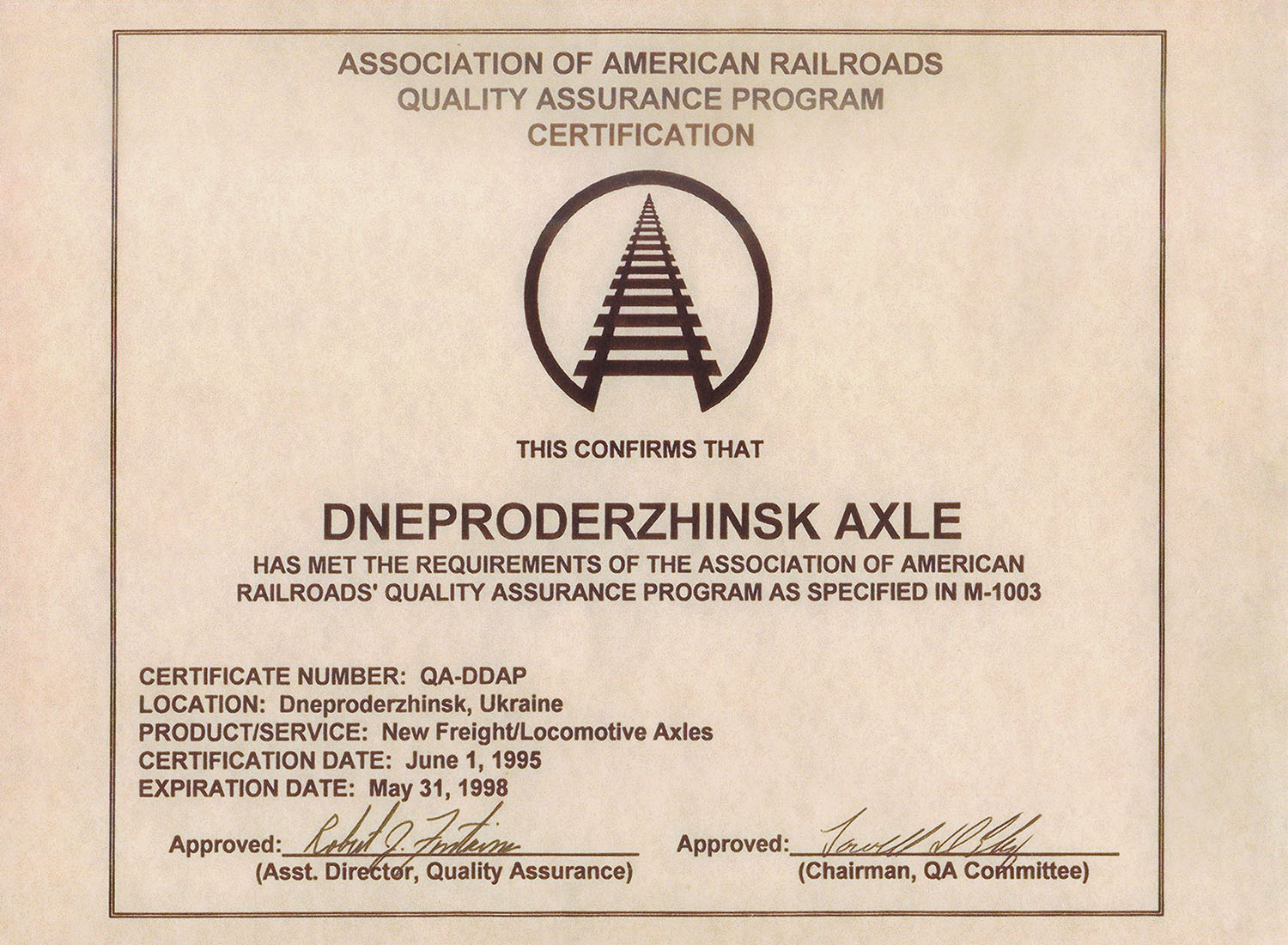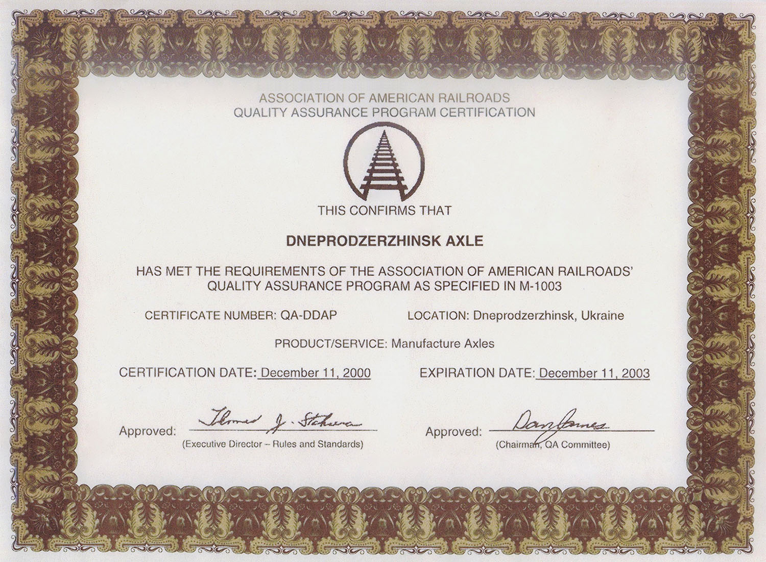 We are perfectionists in matters of the quality of our products and services. Therefore we follow the highest quality standards such as ISO 9001:2015, AAR M-1003, EN 13261. Internal and external audits of the railway axle production process are regularly conducted to improve our operations and prevent any flaws.