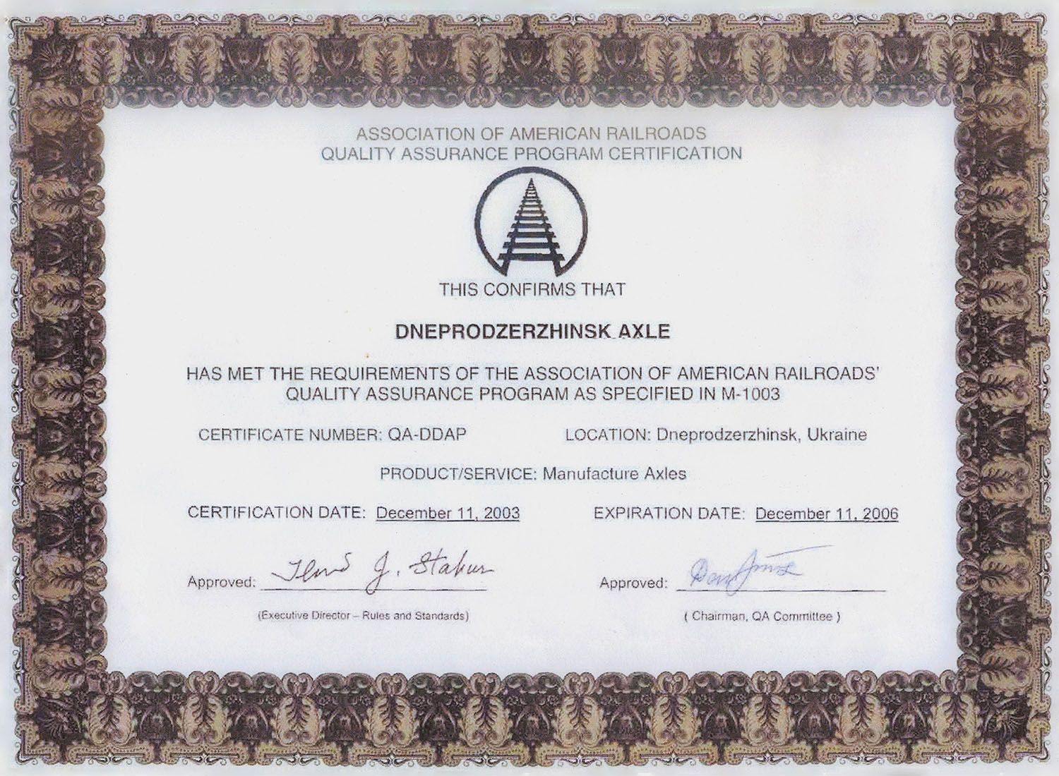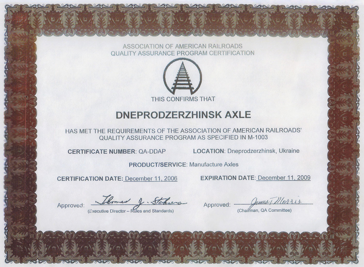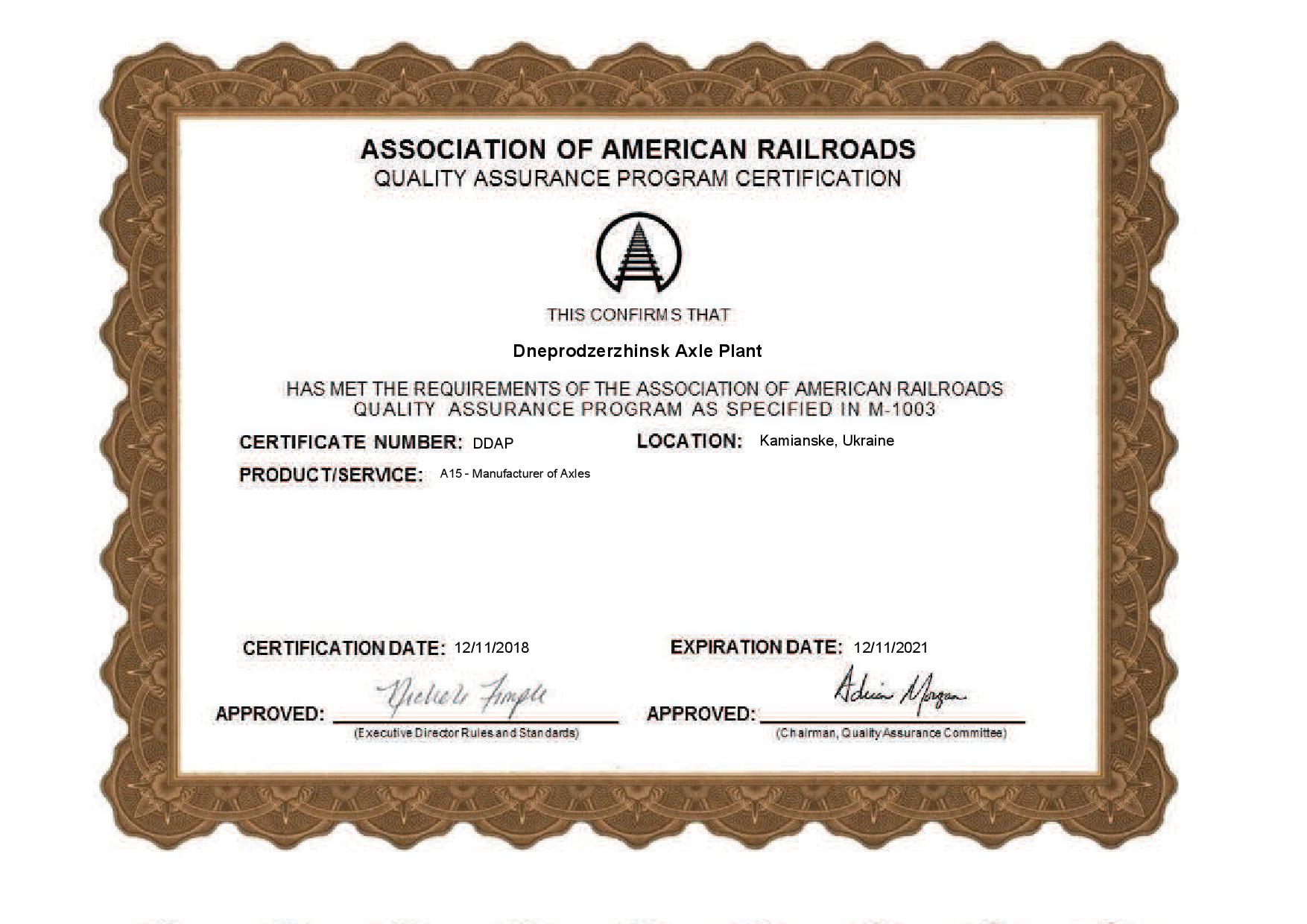 We are perfectionists in matters of the quality of our products and services. Therefore we follow the highest quality standards such as ISO 9001:2015, AAR M-1003, EN 13261. Internal and external audits of the railway axle production process are regularly conducted to improve our operations and prevent any flaws.