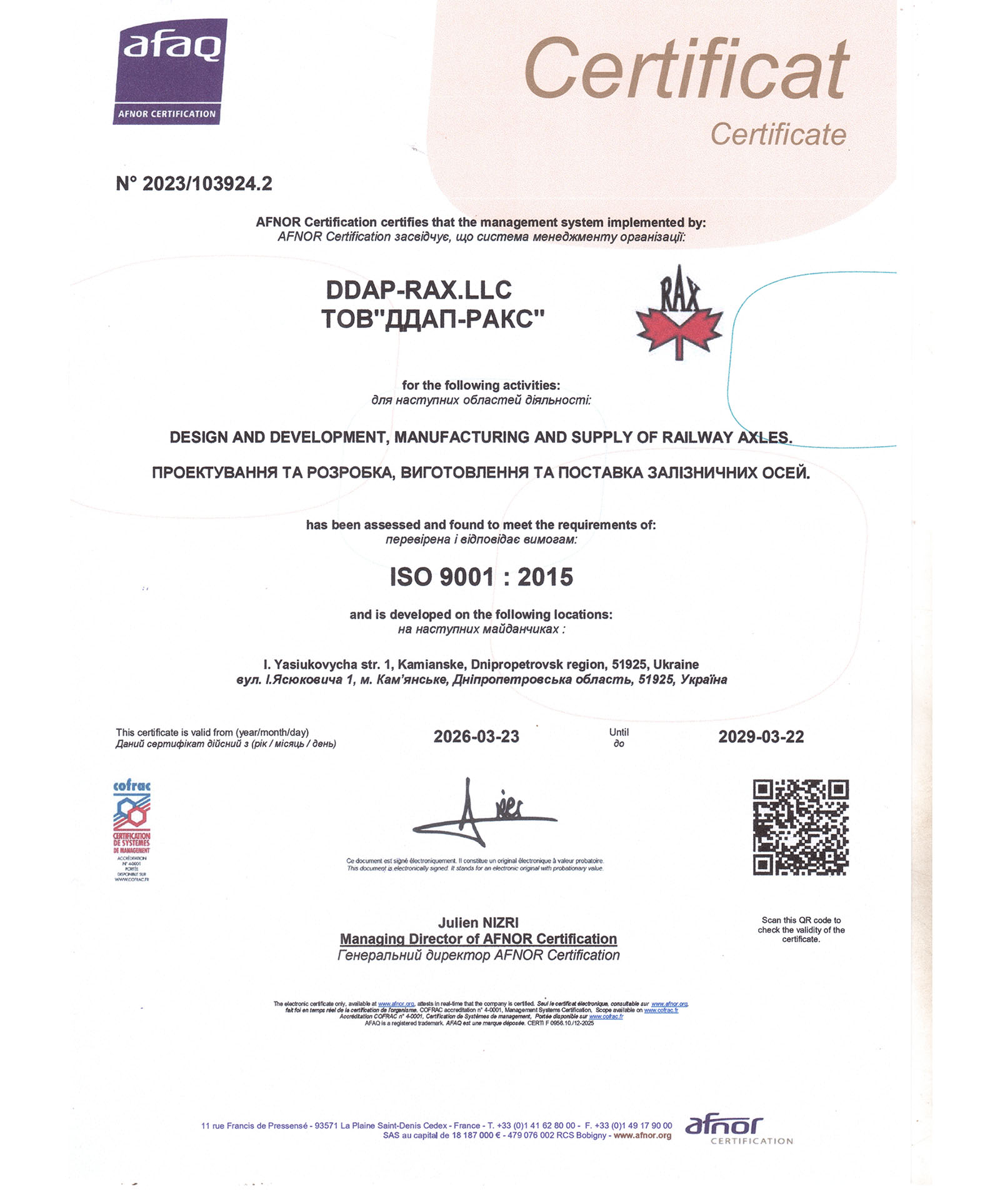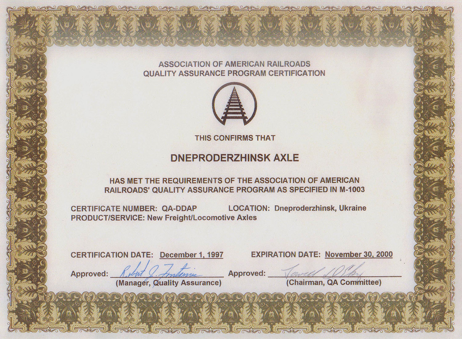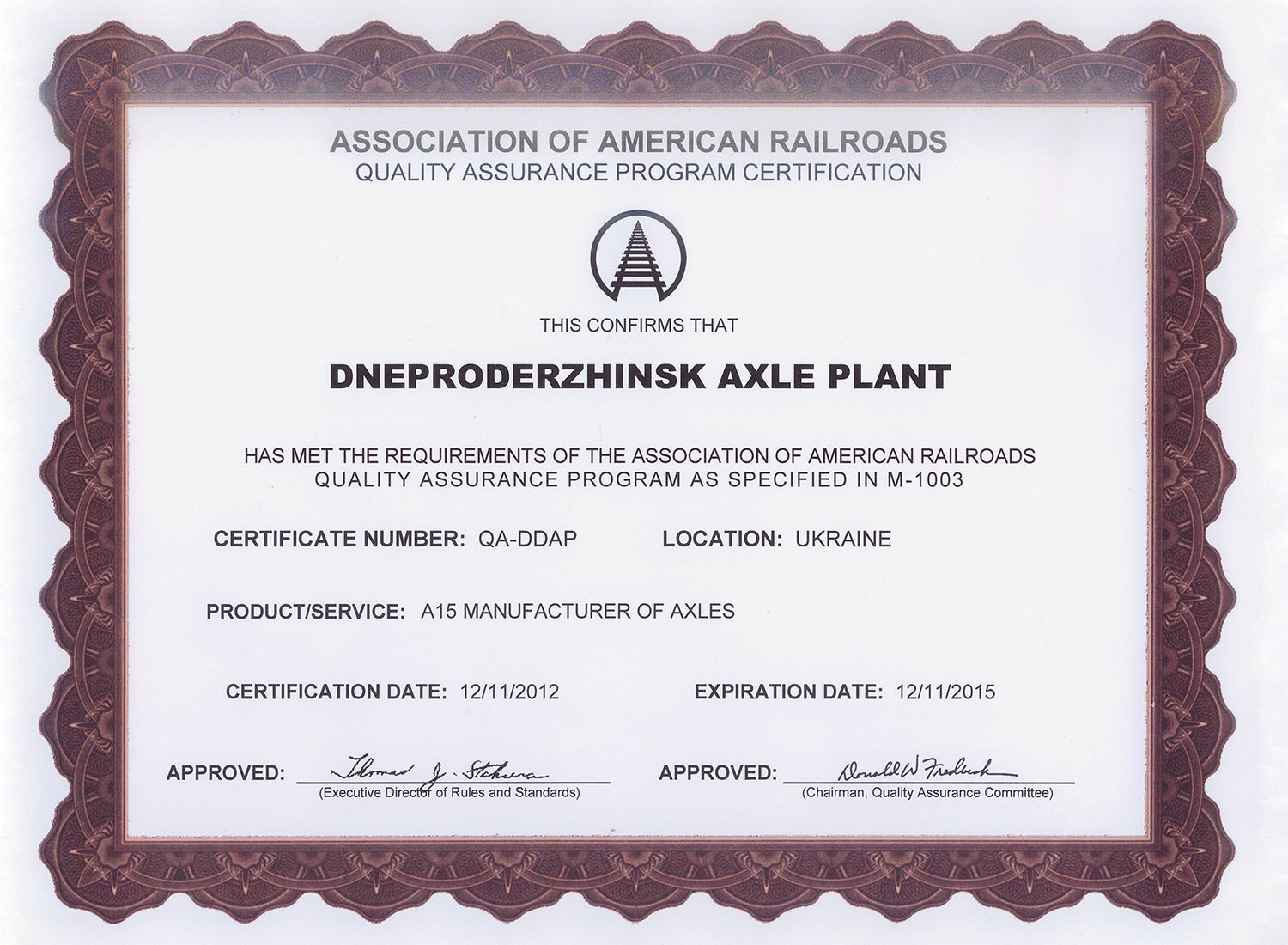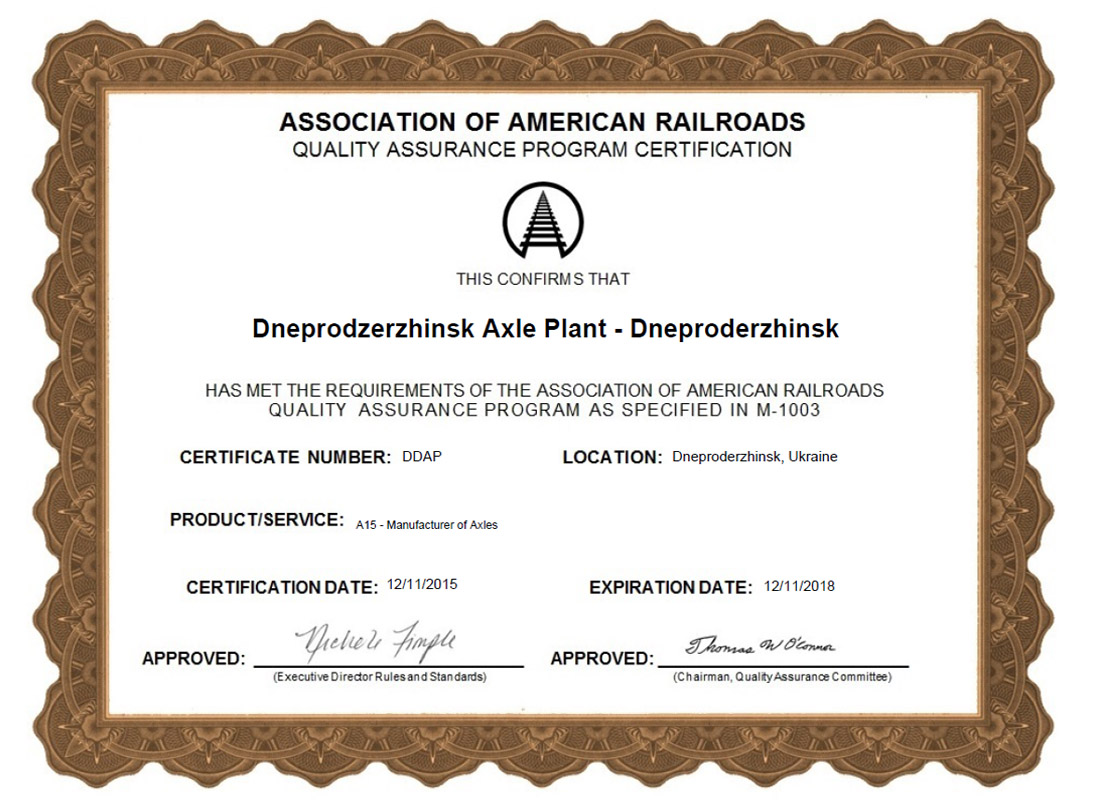 We are perfectionists in matters of the quality of our products and services. Therefore we follow the highest quality standards such as ISO 9001:2015, AAR M-1003, EN 13261. Internal and external audits of the railway axle production process are regularly conducted to improve our operations and prevent any flaws.